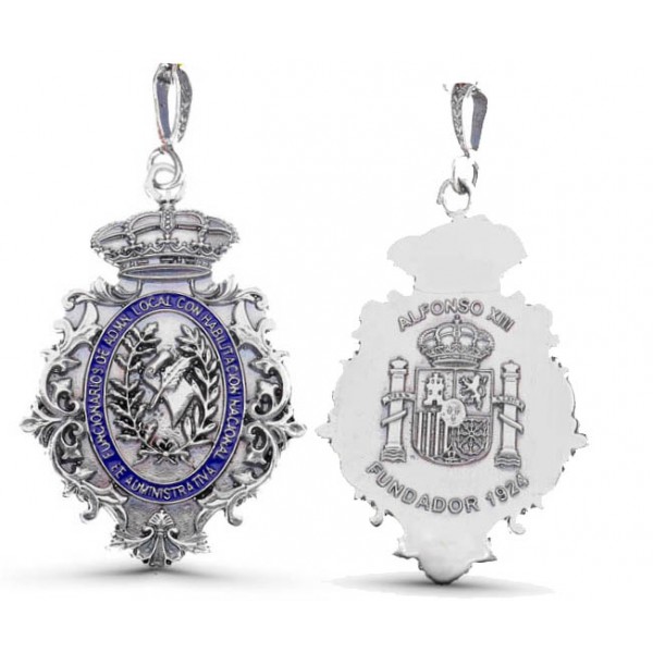 Medalla de Secretario de Administración Local, fabricada en metal plateado y esmaltado.